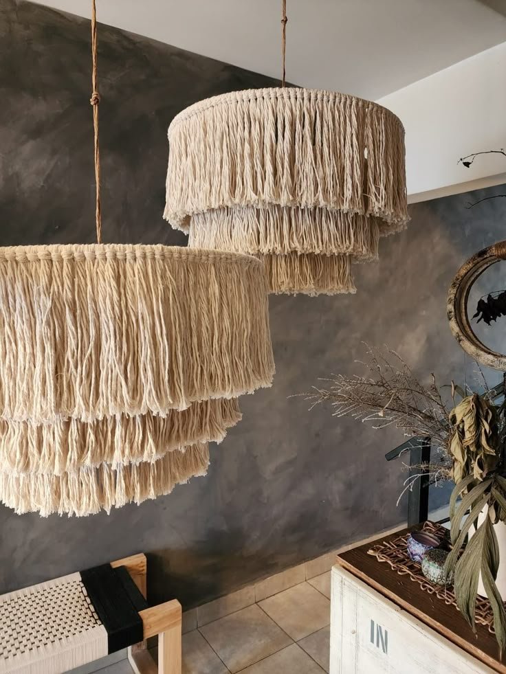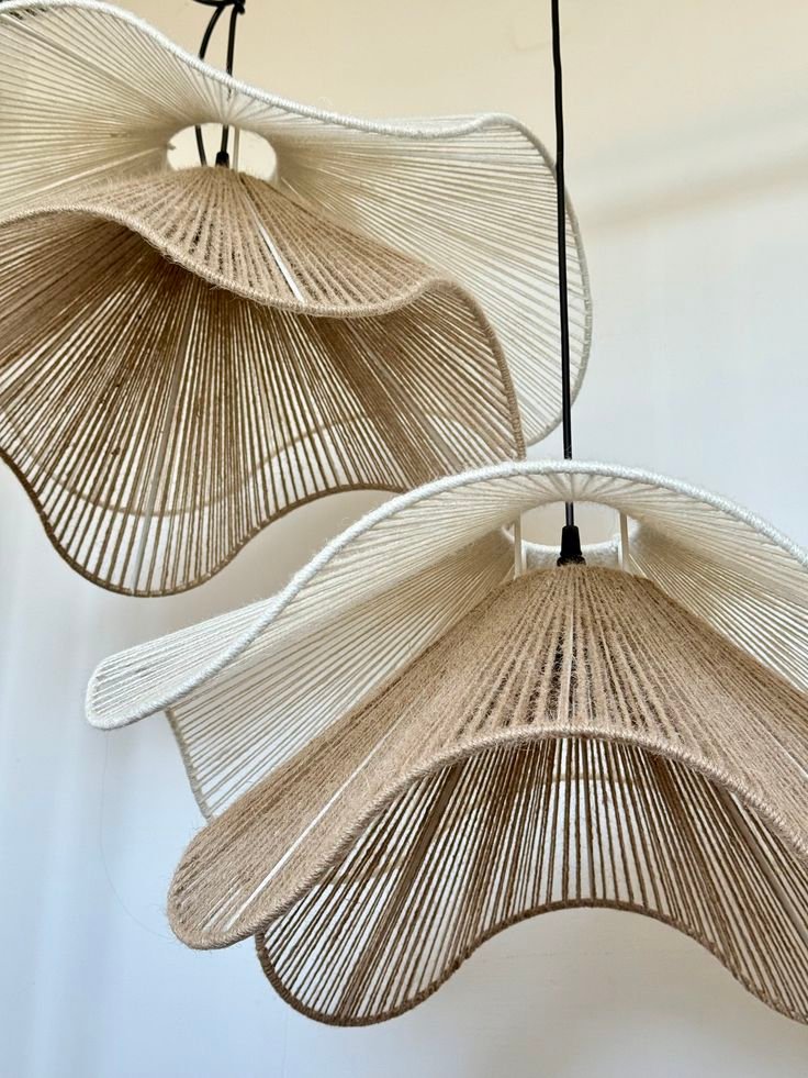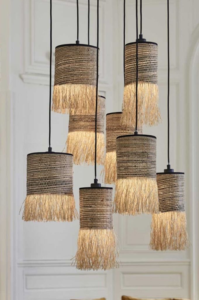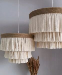 Apportez une touche de texture et de douceur à vos plafonds avec notre collection de luminaires artisanaux. Ce lustre à étages est une véritable pièce de design qui capture la lumière avec élégance :